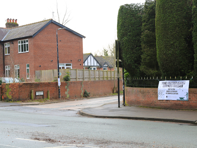 3. Return to Edge Lane, cross it and go along Turn Moss Road, which leads to Turn Moss playing fields. Continue in a straight line past the car park and across the path.