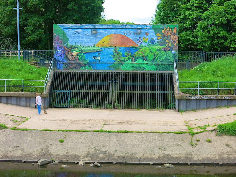 The brook flows through Chorlton Ees,. Gradually flood control measures were developed to reduce the disruption caused by periodic floods. ‘Ees’: crops up all along this stretch of river. Ees means a piece of land liable to flood, or water meadow, and is derived from the Anglo-Saxon meaning ‘island’.