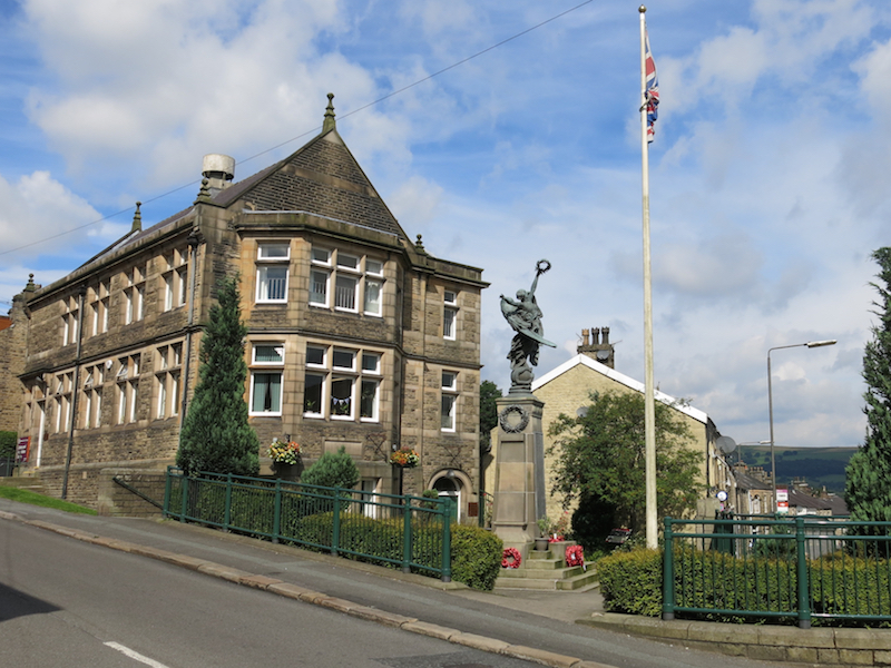 1. Arrive at the station at Hadfield Station by car or train. Walk downhill to the war memorial at the junction of Station Road, Platt and Railway St.
