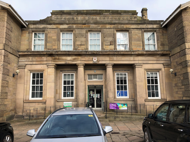 Victoria Hall, a grand gothic revival hall purpose-built in 1888 on land donated by Francis Edward Howard, 2nd Lord Howard of Glossop. The hall, which is in need of major renovation after years of neglect, including to its unused upper floor with its retro-sprung dancefloor, is now proposed to become an Arts Centre.