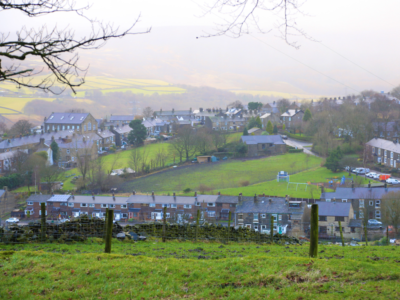 There is a bench here for a short rest and an opportunity to admire the views of Hadfield, Padfield and the Pennines to the left. The village of Padfield lies on the fringe of the Peak District National Park in the High Peak District of North Derbyshire. It was once a mill village with signs of a bygone era still visible today. The current facade is one of a village community with its many stone terraced cottages, allotments, Independent Chapel, community primary school and the only village public house, the Peels Arms pub. Much of the village is part of a conservation area, which helps to maintain the natural beauty and local wildlife of the village so it can be enjoyed by both locals and visitors. Padfield is edged by beautiful countryside with easy access to the Longdendale Trail, a former railway line now used by walkers and cyclists alike, nestled in the stunning Longdendale Valley and the six reservoir chain that, when built, was the largest artificial expanse of water in the world. For a while Padfield was home to Bez and Shaun Ryder from the Happy Mondays.