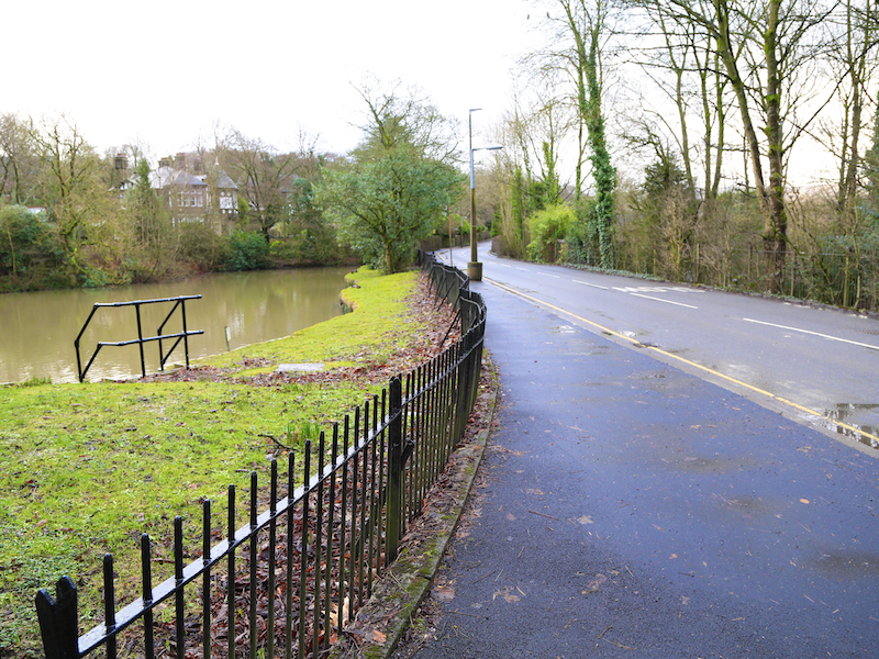 12. At the Queens Arms, turn left onto Manor Park Road crossing Glossop Brook and proceed down Manor Park Road to the first small entrance to the park on the right hand side of the road.