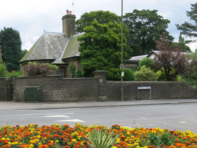 Howard Park is a public park occupying about 5 hectares, including a swimming pool. The original concept of the layout was for private gardens to appear to merge with the larger recreation ground. This has generally been maintained. In 1887 the Wood family, cotton industrialists and prominent employers in the town, announced that they would provide a hospital, baths, and public park. Land was offered for the project by Lord Howard of Glossop. The design and laying out of the park were carried out by Henry Ernest Milner. A Manchester architect, Mr Murgatroyd, designed the hospital, baths and lodges at the two entrances. The hospital is currently being converted into a respite centre by a local charity, ”Reuben’s Retreat”.