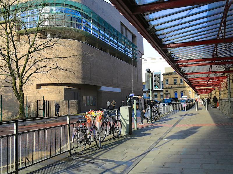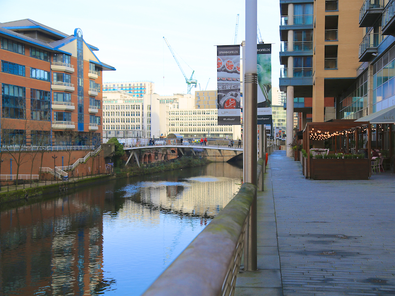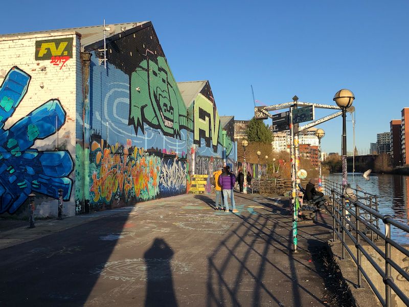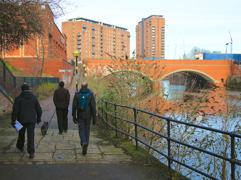 15. Walk along the riverside walkway with a series of bars and restaurants on the right, including the Dockyard, which serves good beer, vegetarian and meaty food and is dog friendly. Leave the riverside by the People’s History Museum and walk up on to Bridge Street. Turn left across the bridge and pass Salford Central station on the left. Turn right into Chapel Street. Then retrace the route to Victoria Station as in instructions 2 and 1 above.