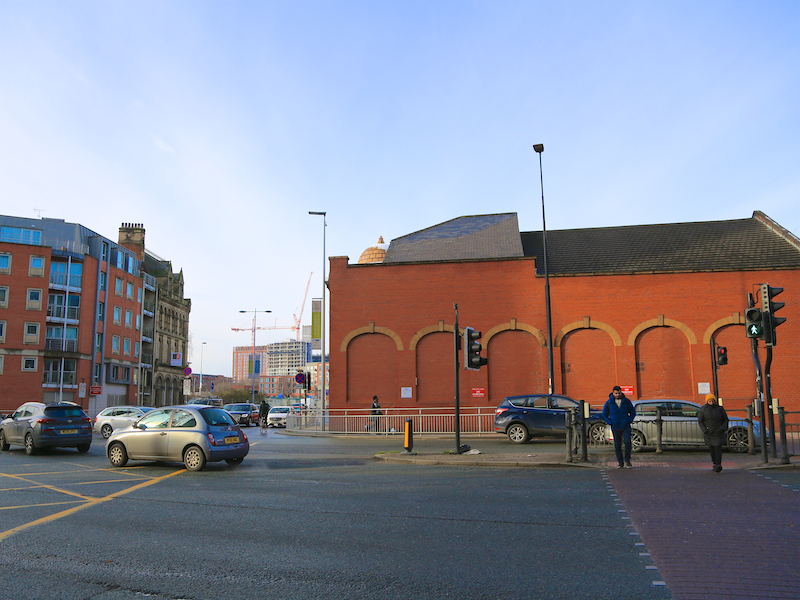 3. Continue along Chapel Street, under the railway bridge. At the busy junction with Trinity Way cross at the pedestrian crossing and continue past the old Salford Cinema building, now the New Manchester Church. Turn right into Bexley Square.