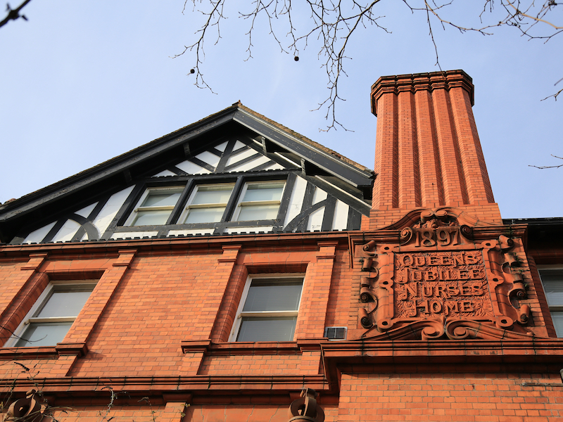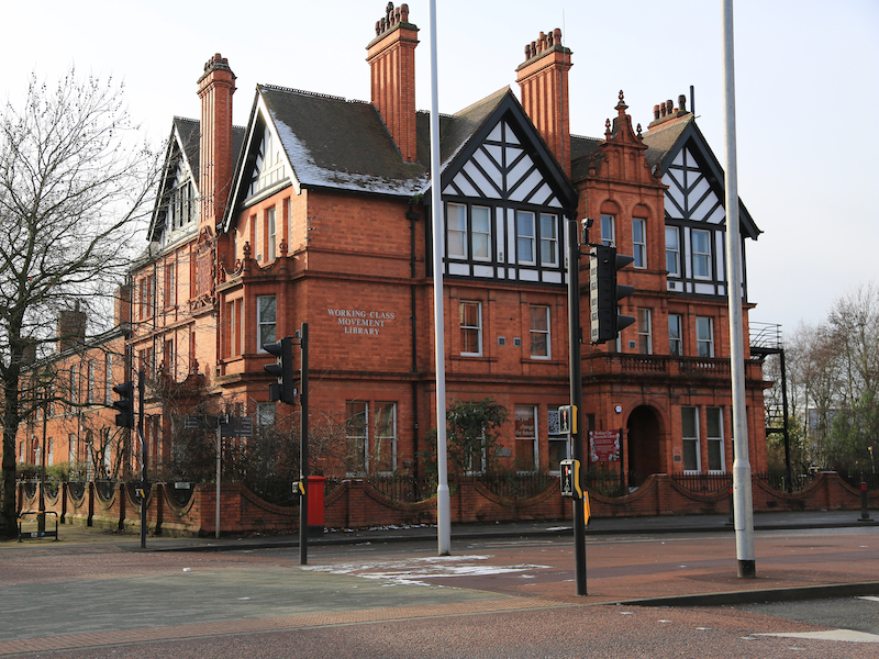 Across the main road from the Peel Building is Jubilee House, now home to the Working Class Movement Library. Jubilee House was built to mark the Diamond Jubilee of Queen Victoria’s reign. Work began on it in 1897. It is a three storey red brick building with mock-Elizabethan gabled ends, designed by the architect Henry Lord, and officially opened on 26th January, 1901. It began life as the Salford Royal Nurses’ Home and was where the nurses who were the pioneers to our district nurses resided. The Working Class Movement Library started life in the 1950s as the personal collection of Edmund and Ruth Frow. It became a Charitable Trust in 1971 and moved to its present home in 1987.