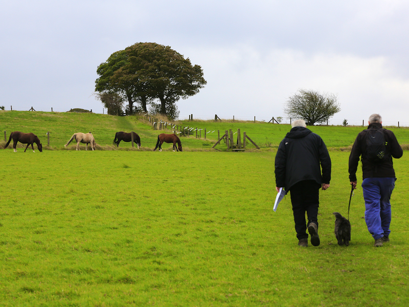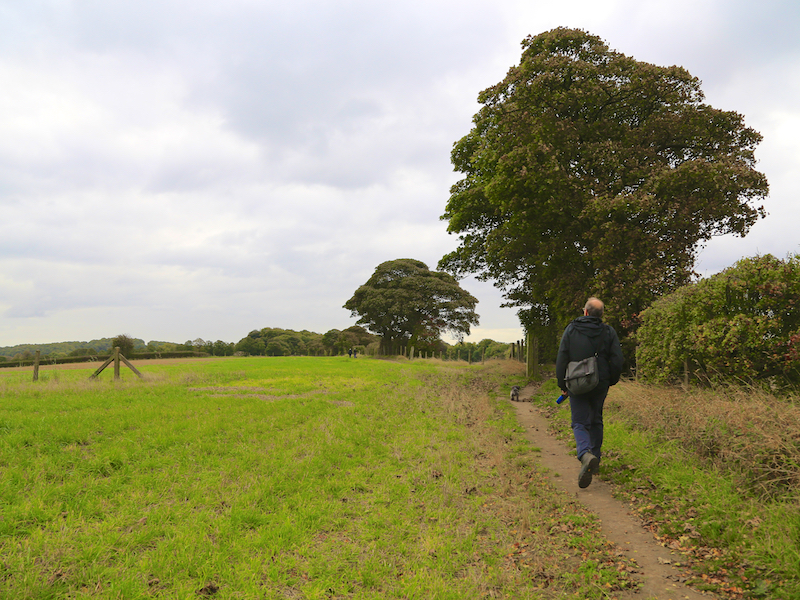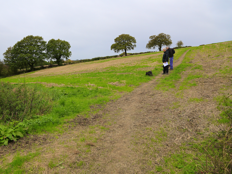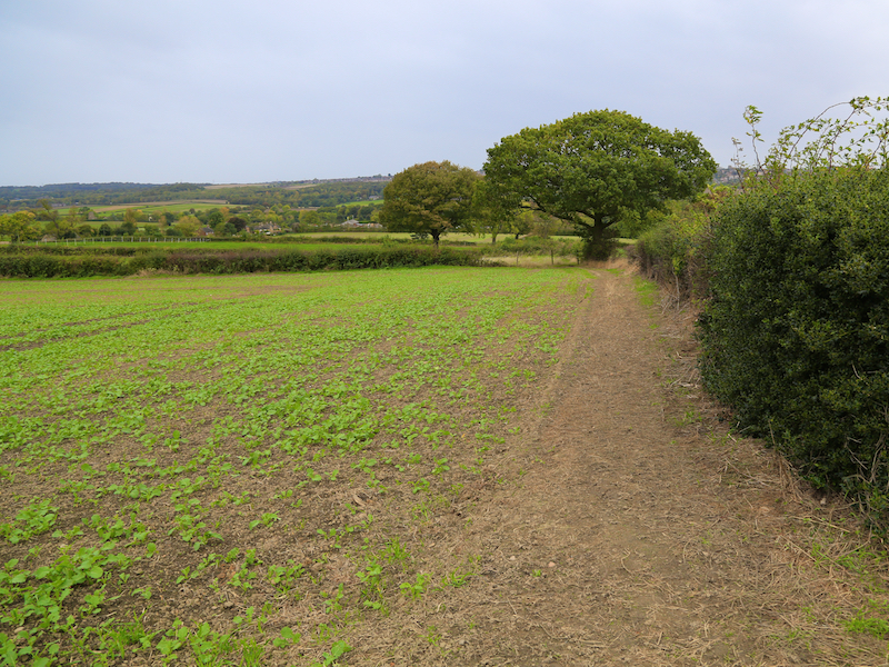 14. Go straight across this field for 275 yards, to a point where the footpath meets the hedge and turn left along the hedge, continuing through four small fields via four stiles.