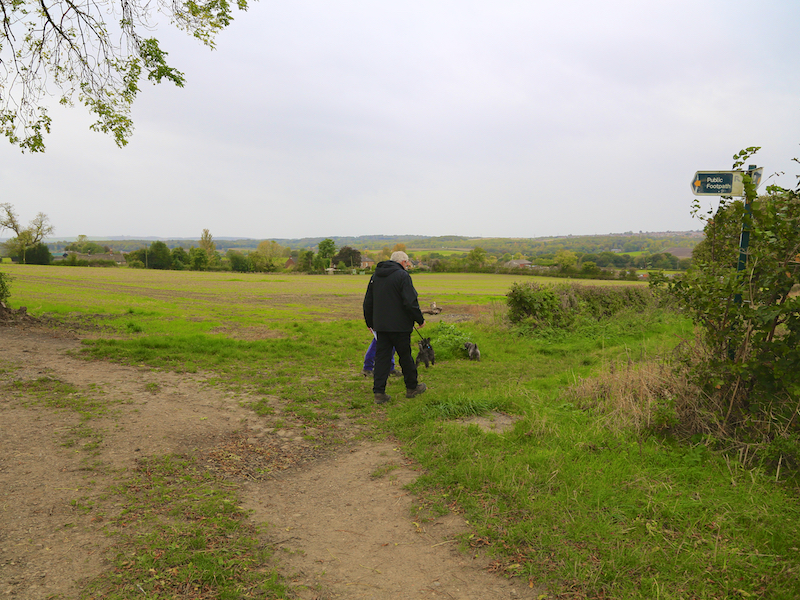 13. 200 yards beyond the pub, take the second turning on the right, Clayfield Lane, and enter the fields at the footpath signpost where the road turns right
