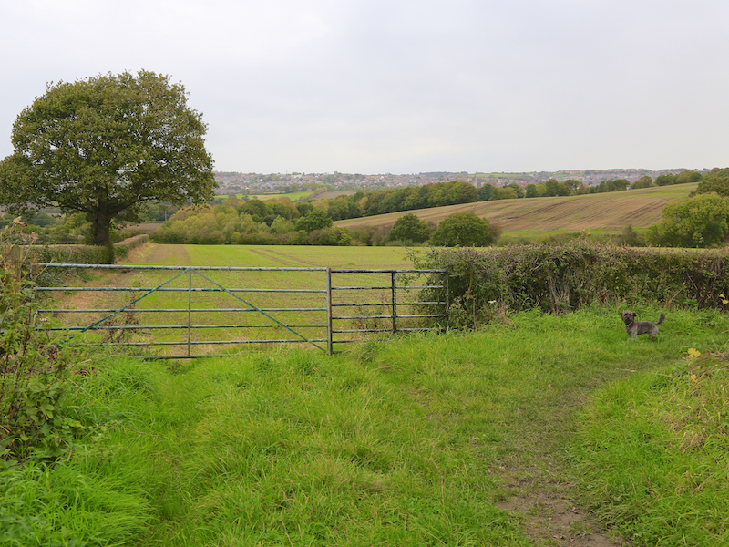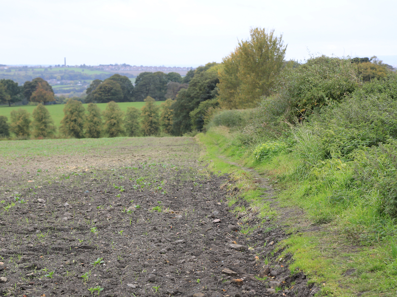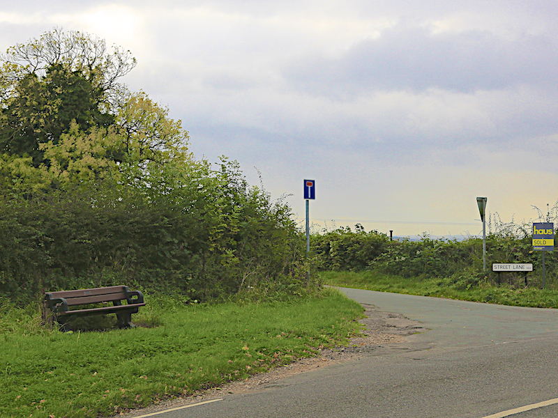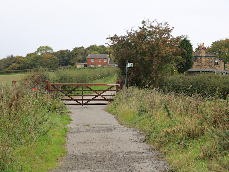 7. From the door of Hoober Stand, head south down a clear path to Street Lane, and turn right onto the unmade road and head back to Street Lane.