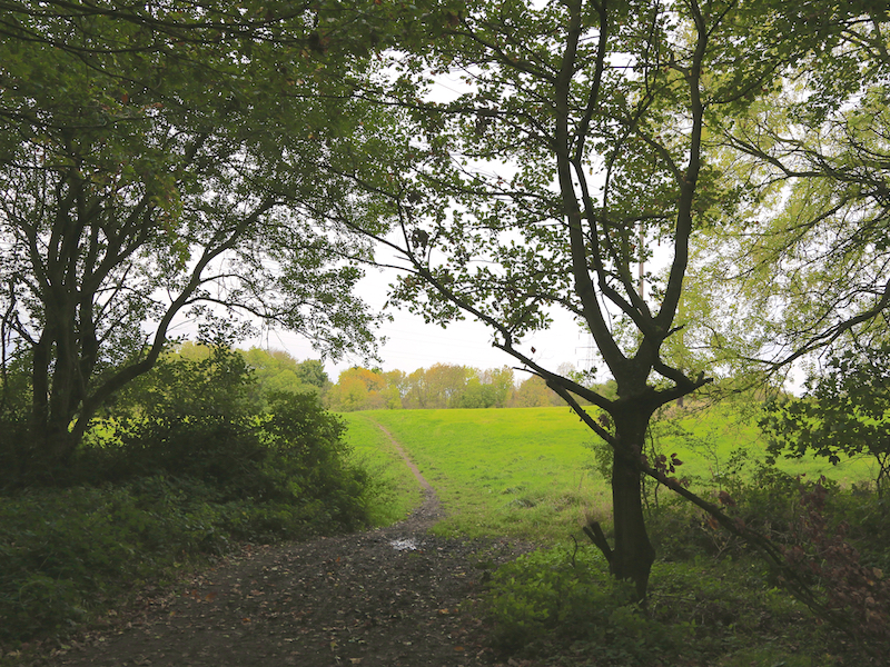 17. Follow the path through the woodland, leaving it briefly to cross a field with electricity pylons in it, before re-entering the woodland to join the path taken at the start of this walk. Return along this path to the car park.