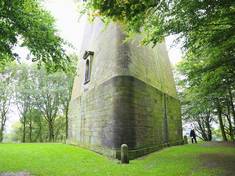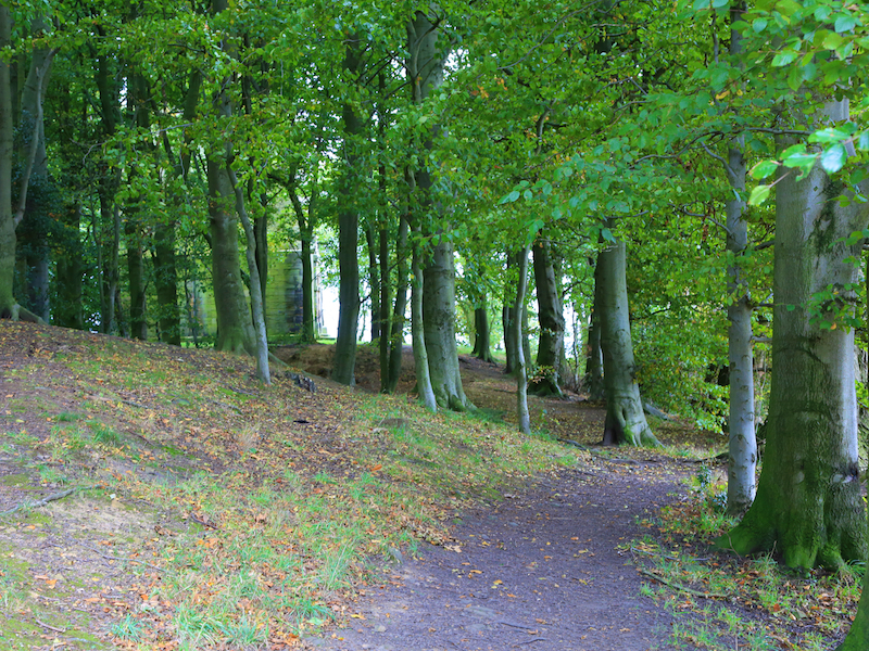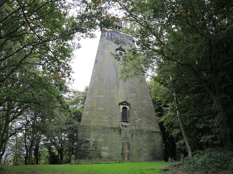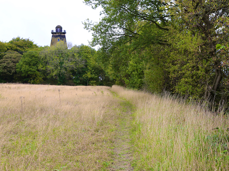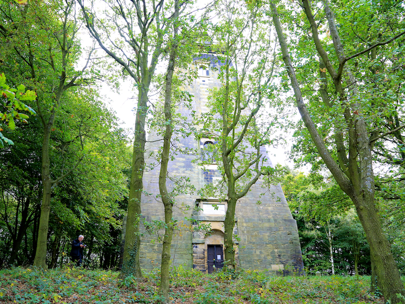 6. Continue across the field as the path leads to woodland where a path leads up through the woods to the next folly: Hoober Stand.